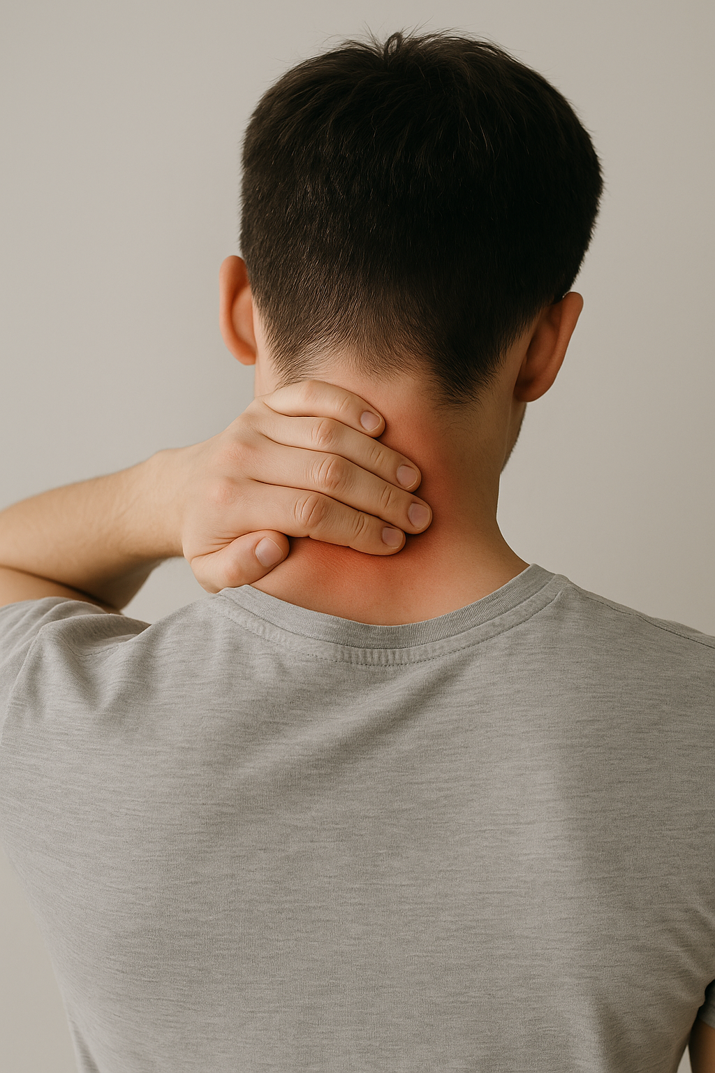 - Rigiditate la nivelul gâtului, umerilor sau spatelui